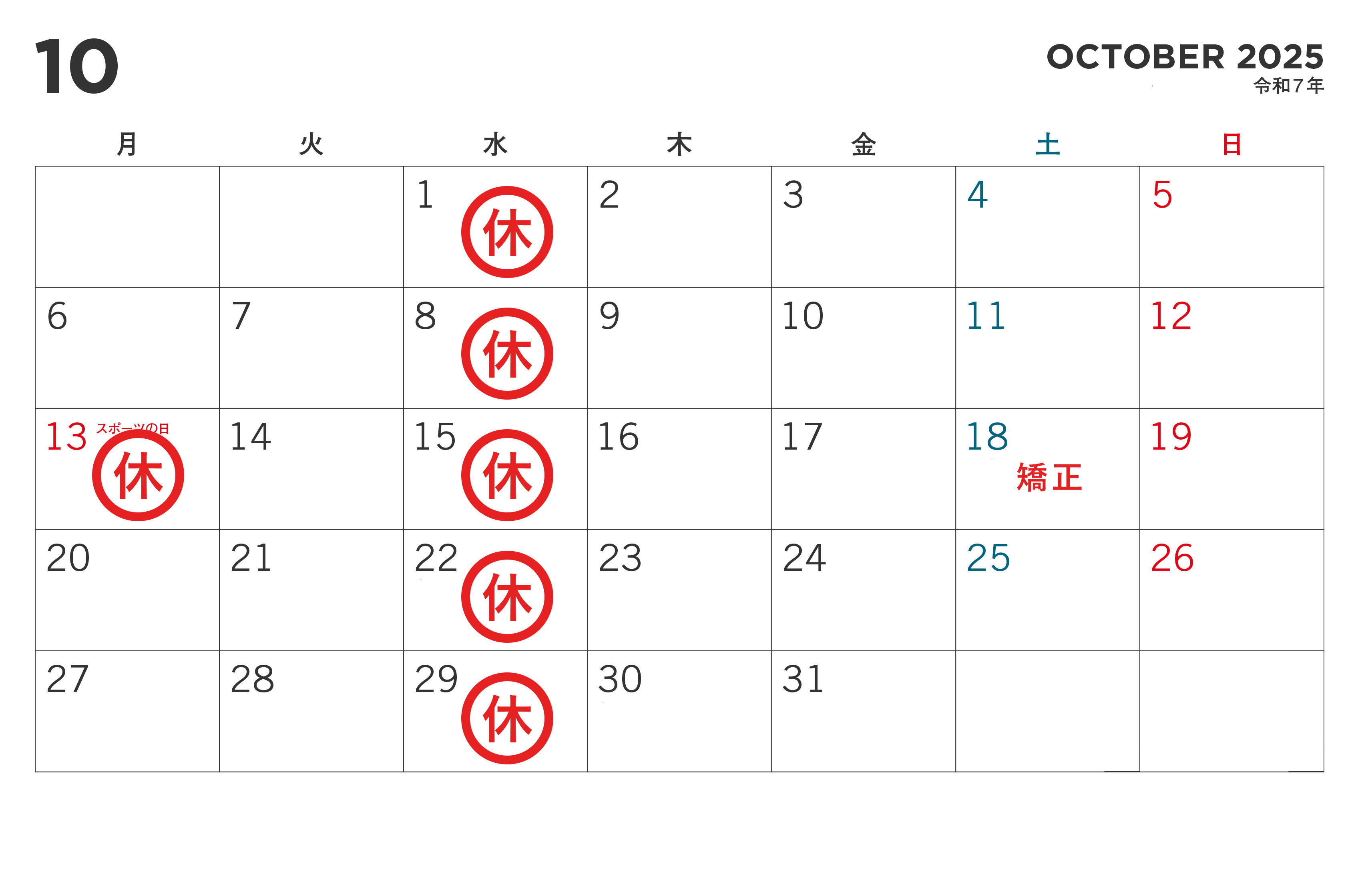 当院では下記日程を休診とさせていただきます。あらかじめご了承頂きます様、お願いします。