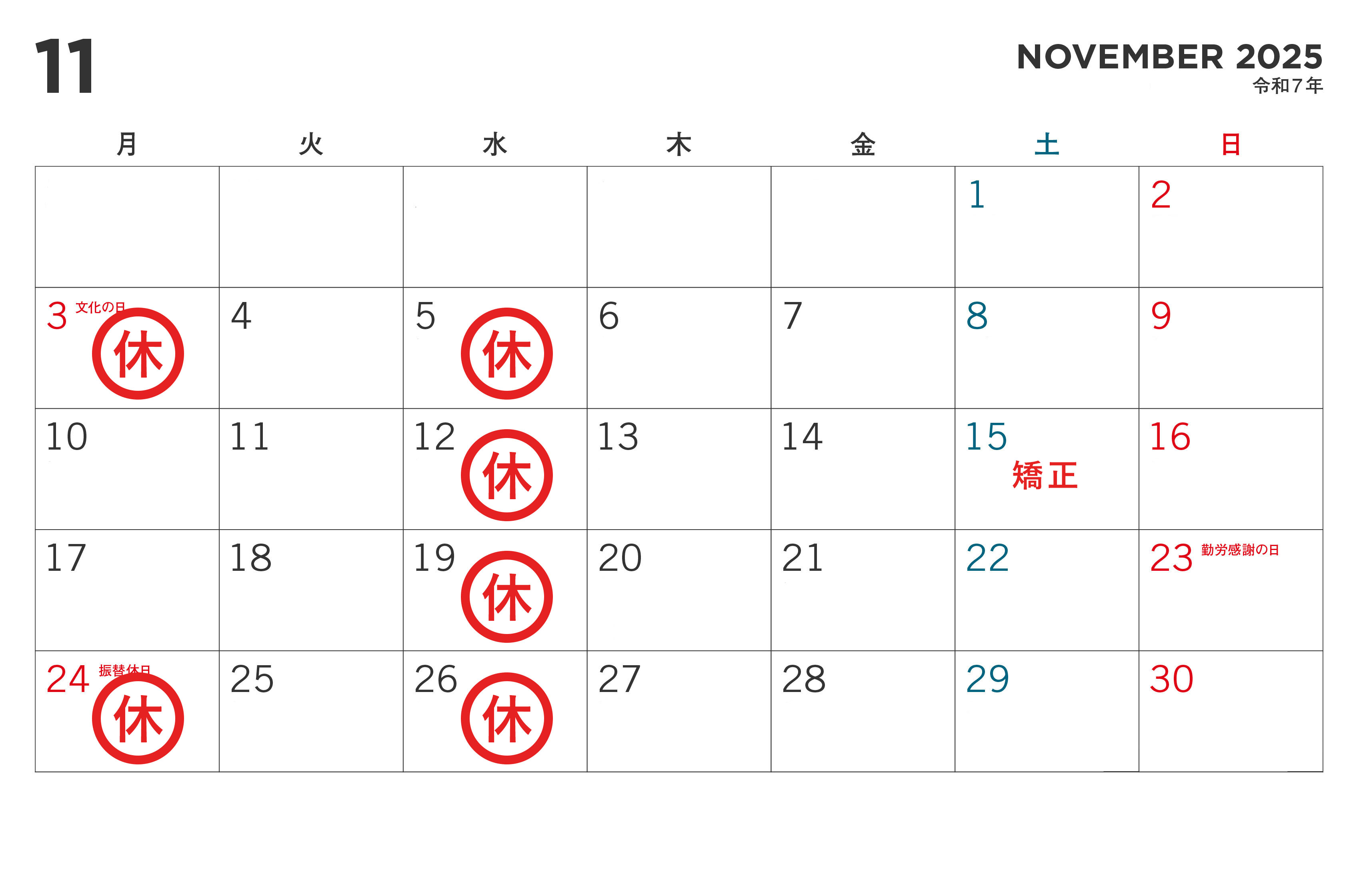※10/18 矯正日 ※10/20 今井先生外来 ※11/15 矯正日 ※11/17 今井先生外来