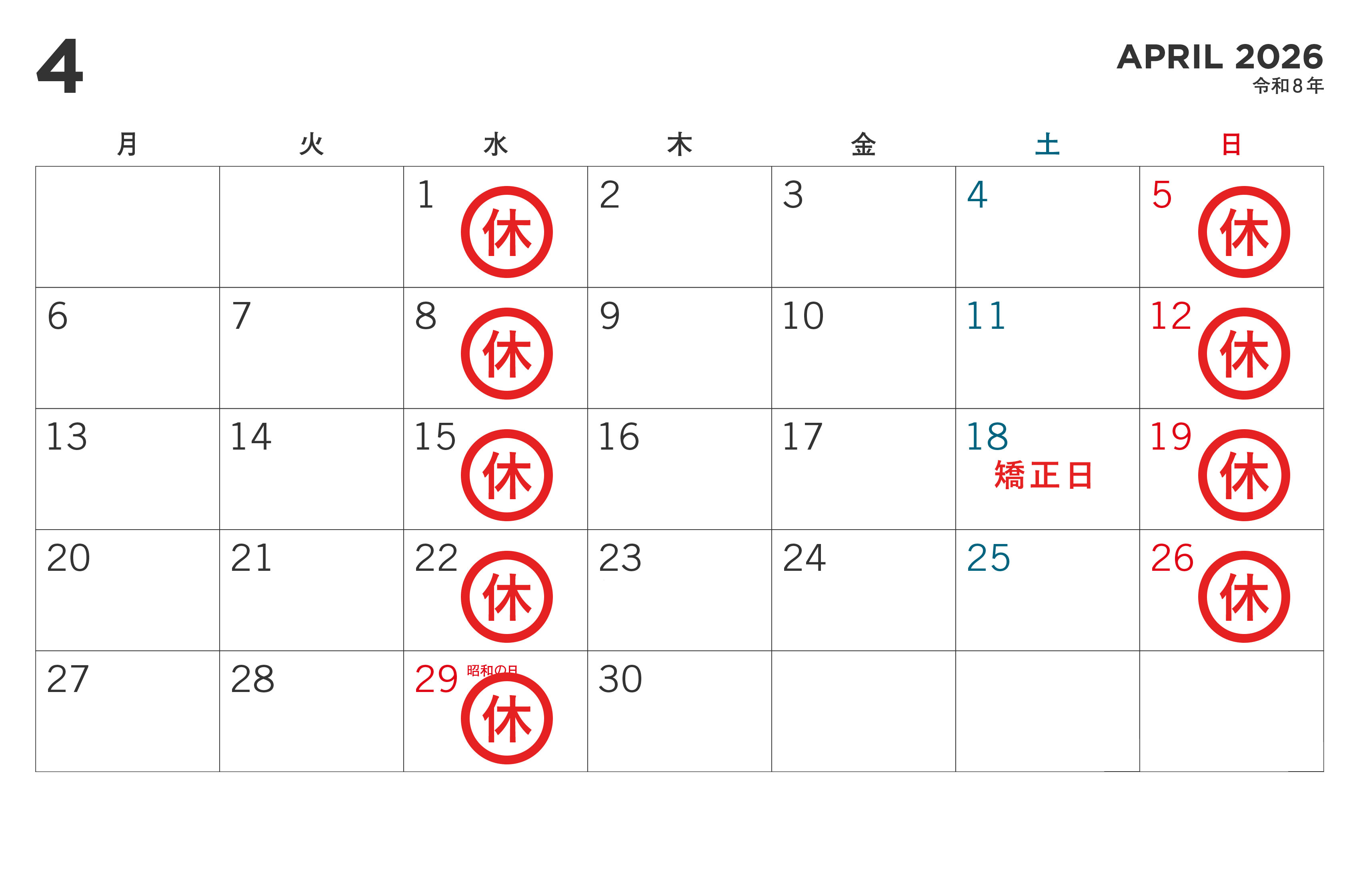 ※4/18 矯正日 ※4/27 今井先生外来 ※5/16 矯正日 ※5/25 今井先生外来